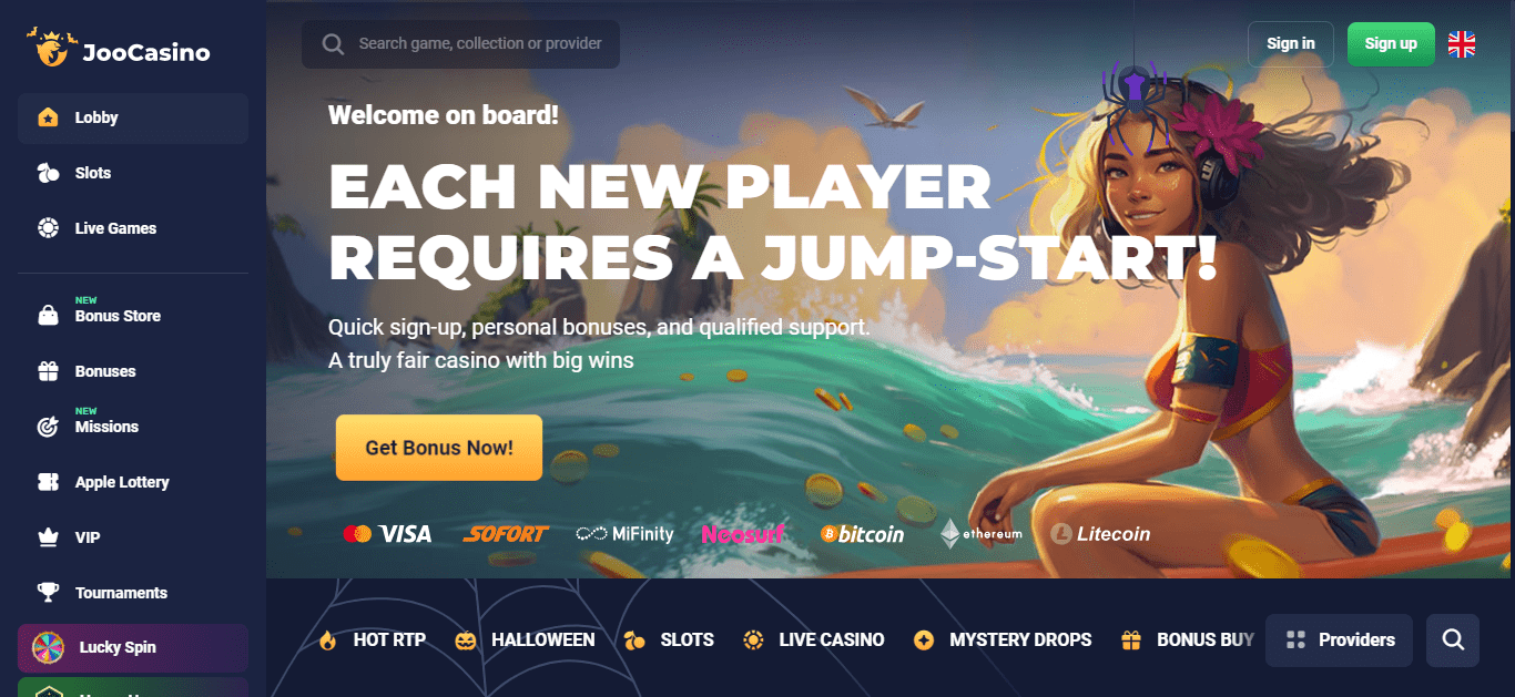 Joo Casino ist ein Online-Casino, das von den führenden Softwareplattformen wie NetEnt, SoftSwiss und Ezugi betrieben wird und eine Auswahl an Casinospielen anbietet, darunter Spielautomaten, Pokerspiele, Roulette und Kartenspiele. Die gesamte Spielesammlung kann über einen kompatiblen Flash-Browser gespielt werden, ohne dass ein Download erforderlich ist. Joo Casino bietet eine Auswahl seiner Spiele auch für unterwegs in einem vollständig optimierten mobilen Casino an. Das Casino unterliegt den Gesetzen von Curacao.