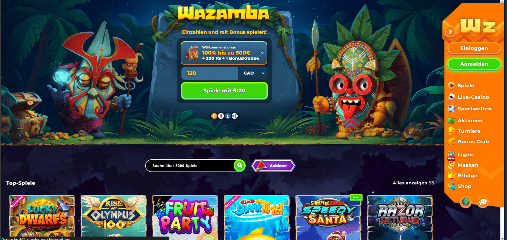 Mitglieder des Wazamba Casinos können in diesem Online-Casino ihr Glück bei einer Vielzahl von Spielen wie Tischspielen und Video-Slots testen. Darüber hinaus können Spieler durch das Casino navigieren, indem sie einen von drei totemistischen Charakteren auswählen, Spiele spielen, Erfolge erzielen und Münzen gegen Boni und andere Extras eintauschen. Darüber hinaus bietet die Website eine Reihe hoch angesehener und produktiver Softwareanbieter wie Microgaming, Yggdrasil Gaming, NetEnt, Betsoft, iSoftBet, Habanero, GameArt, Quickspin und Pragmatic Play. Mitglieder der Website können sofort über einen Webbrowser spielen und die Website unterstützt mehrere Sprachen, darunter Englisch, Deutsch und Russisch. Über ihr mobiles Casino können sie auch von unterwegs darauf zugreifen. Die Regierung von Curacao lizenziert und überwacht das Wazamba Casino.