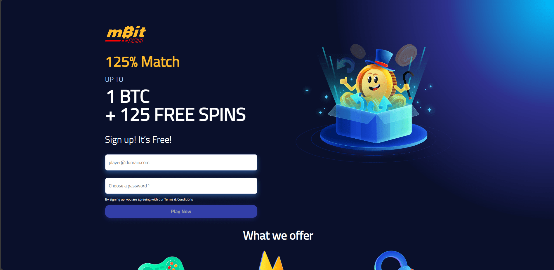 Johtava online-kasino mBit Casino luotiin erityisesti bitcoinin käyttäjille, mutta se hyväksyy myös muita kryptovaluuttoja. Sivustolla on saatavilla yli 200 erillistä kolikkopeliä ja kasinopeliä useilta kehittäjiltä, mukaan lukien Booming Games, Amatic, Play'n GO ja Betsoft. Lisäksi aidomman pelikokemuksen saamiseksi pelaajat voivat hyödyntää mBit Casinon live-jakajaloungea. Curacaoan hallituksen lisenssi on myönnetty mBit Casinolle.