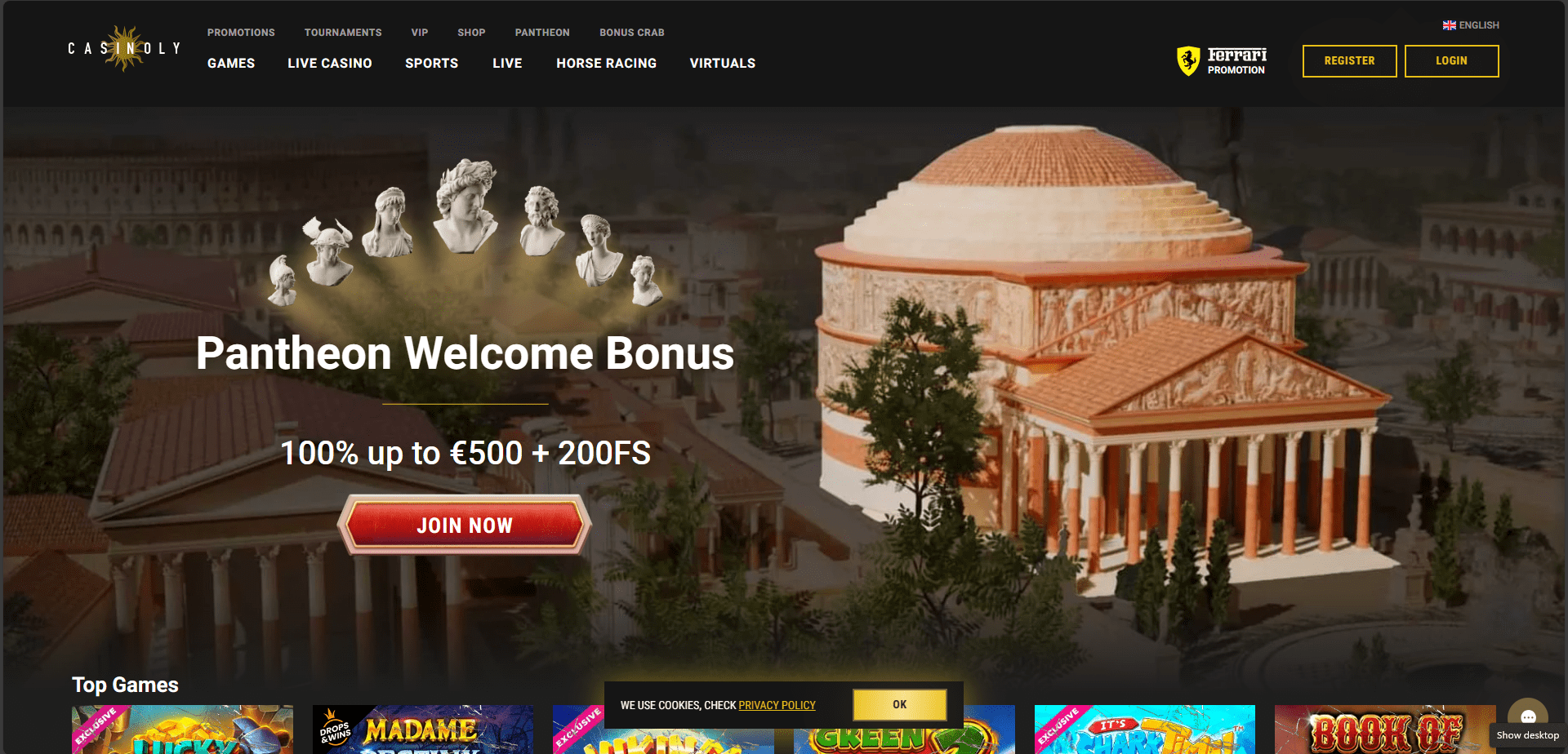 Casinoly Casino is an online casino that will open its doors in 2021 and offers players the chance to embark on a new adventure and experience life akin to that of a god. There are several software providers from which players can select, including popular brands such as Microgaming, Play'n GO, NetEnt, Playtech, Red Tiger Gaming, Relax Gaming, Pragmatic Play, Big Time Gaming, and Playson. The website is playable on most devices and supports a number of languages. They also have a full license from the Curaçaoan government, which governs them.