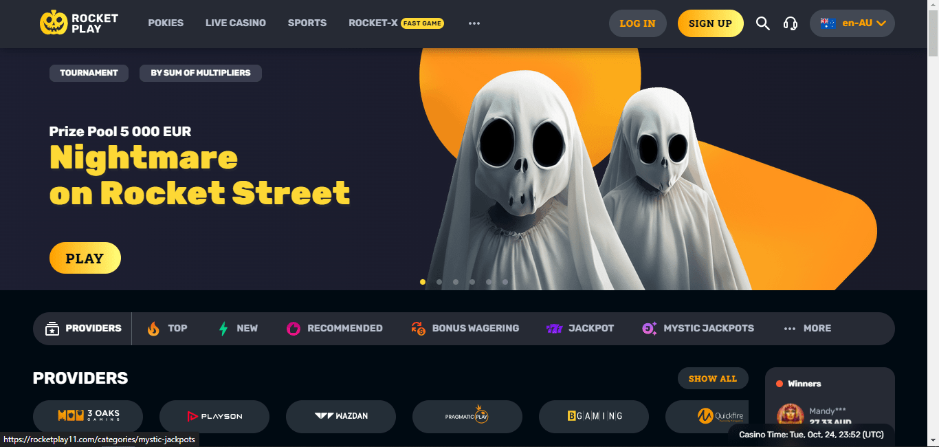 Launched in 2020, the Curacao-licensed Rocket Play Casino now has a sizable selection of games that have been eCOGRA-certified as fair. There are a total of ten accepted currencies, several different types of digital currency, and a dozen payment options for those who prefer traditional deposits. The platform's official language is English, which can be used to communicate with customer service. For assistance from professionals, players can email, call, or use the live chat feature. The games cover all popular genres and are playable on mobile devices. They have many software partner developers and a library of more than 2000 titles that are constantly being updated. You can play video poker, table games, and slots for real or fake money.You can check out the provably fair games when you play at a casino that accepts cryptocurrencies. Depositors receive bonuses, and current members continue to receive benefits. The focus is on a real-time casino, a VIP program, and top-notch gaming. Along with the ride, Rocket Play hosts a never-ending stream of slot tournaments.