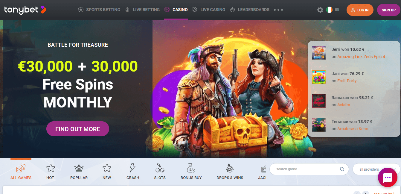 Remember that TONYBET offers two different first deposit bonuses: one for casino games and one for sports betting. You cannot receive one if you have already received the other, and you cannot use them interchangeably.